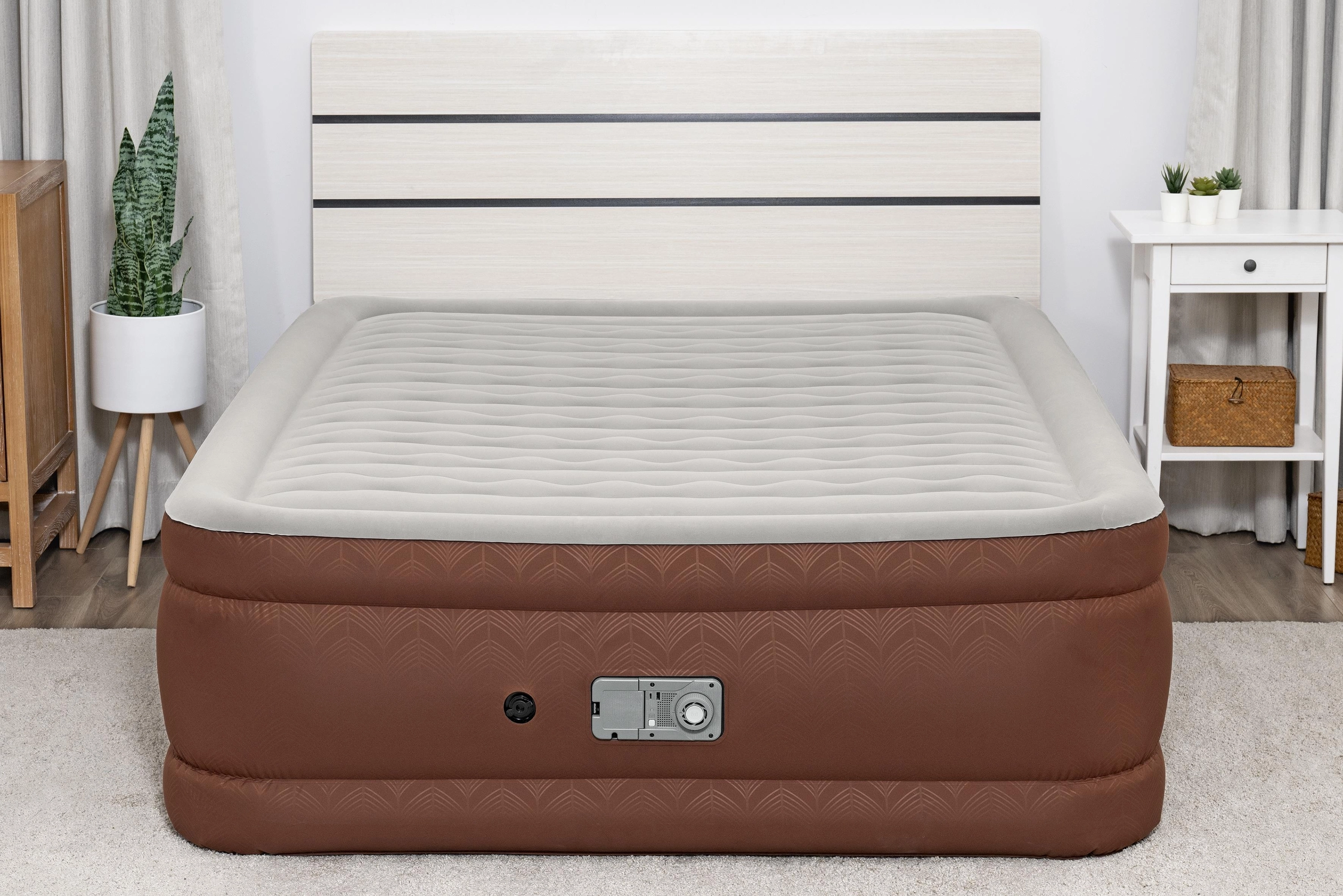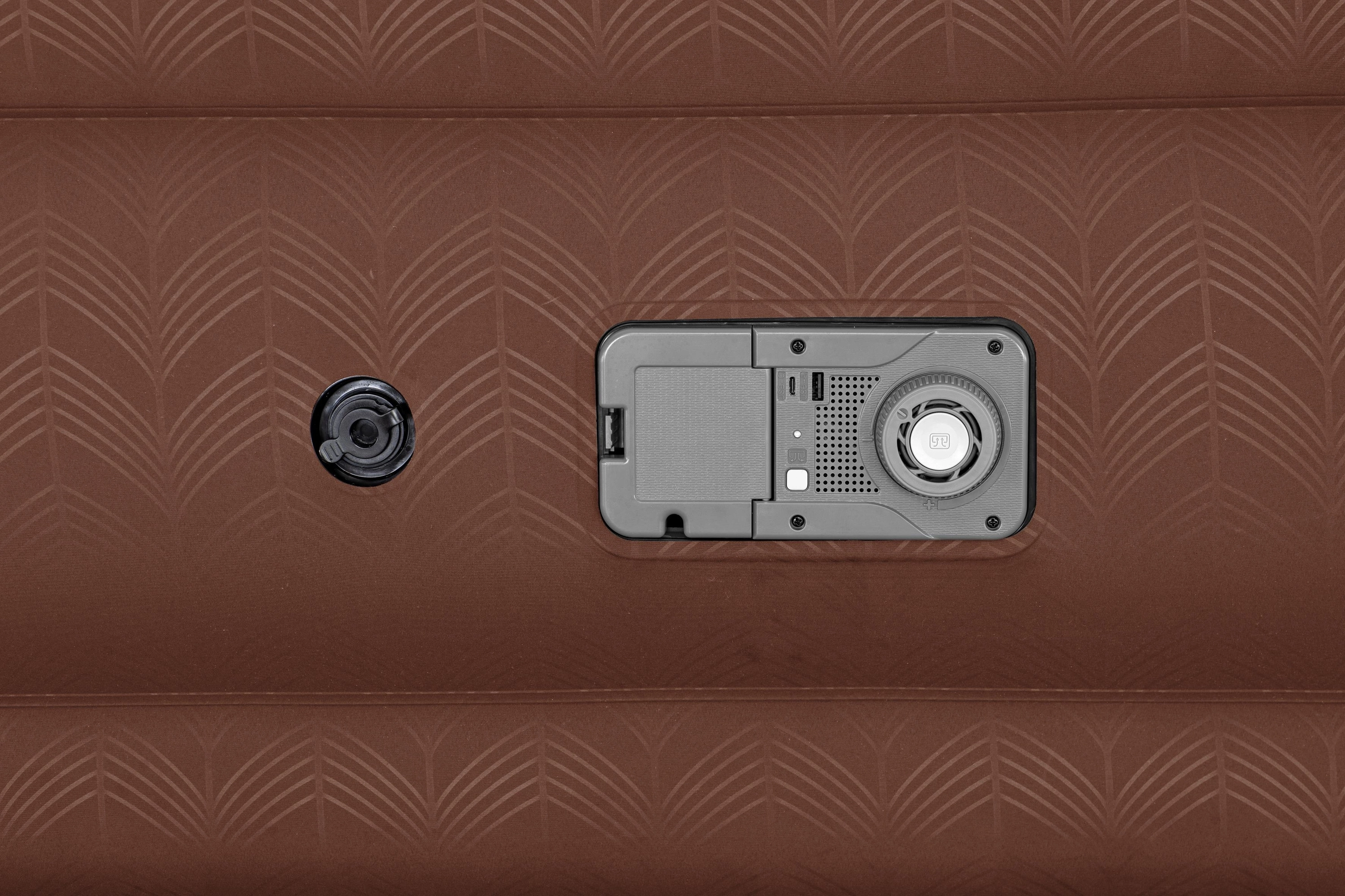 La pompe électrique intégrée (220–240 V) gonfle et dégonfle le matelas en environ 3 minutes. Le panneau de commande est clair et facilement accessible.