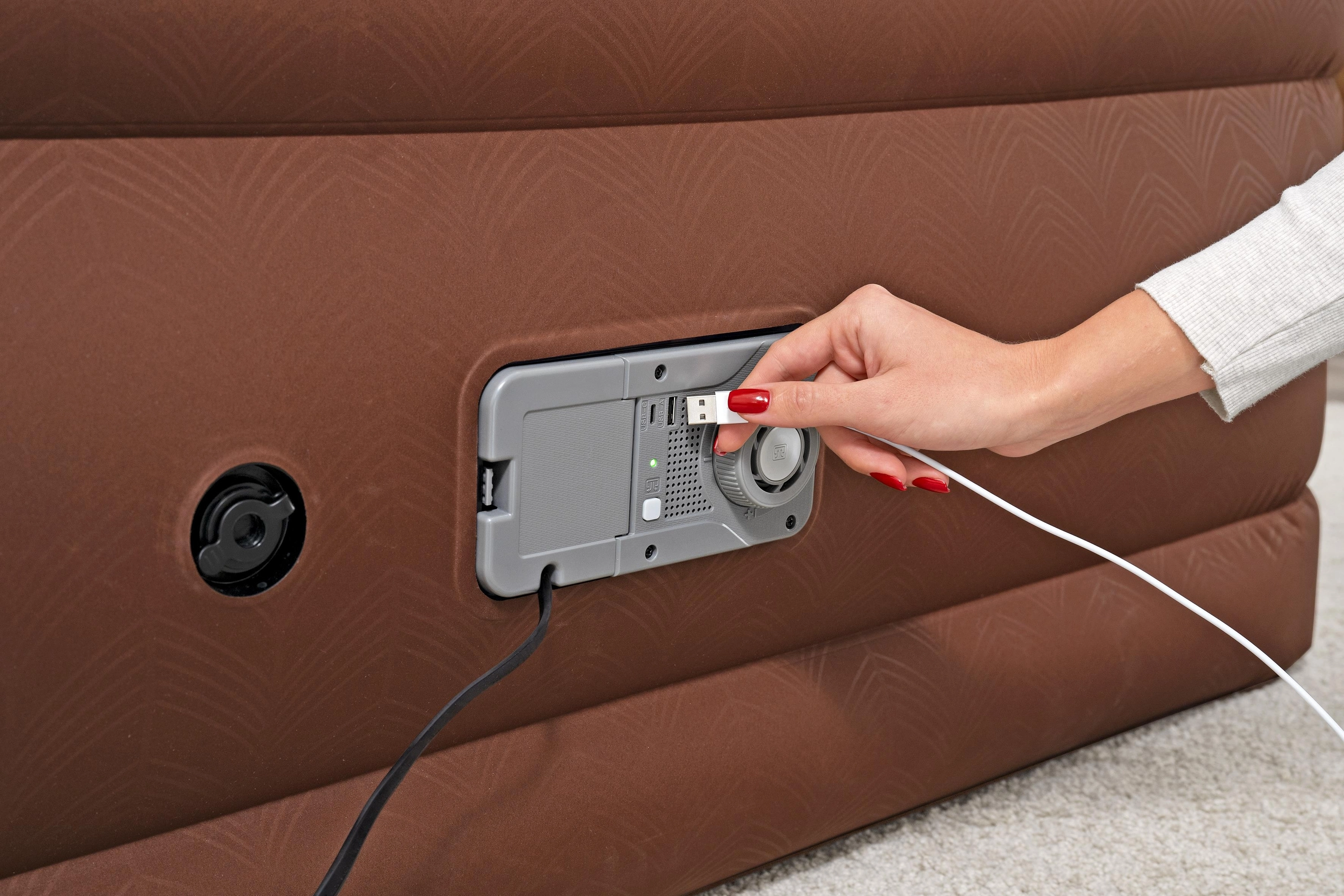 - Pompe électrique intégrée – gonflage en environ 3 minutes, commande pratique sur le côté du lit.