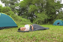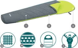 Le garnissage Hollow Fiber 170 g/m² retient efficacement la chaleur et maintient des conditions de sommeil confortables entre +6 et +10 °C, avec une limite extrême jusqu’à -7 °C.
