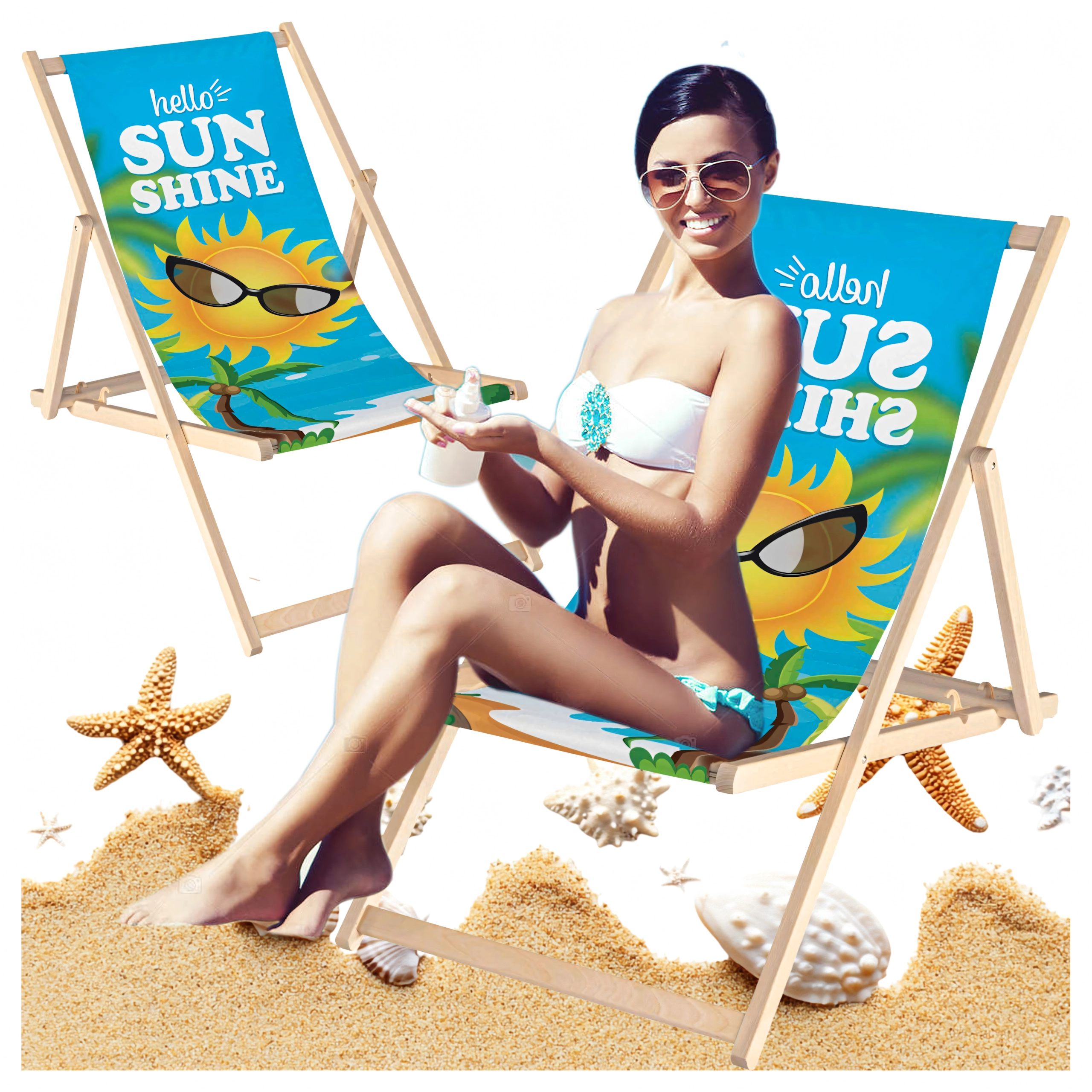 Lot de 2 chaises longues pliantes en bois pour jardin et plage, réglables
