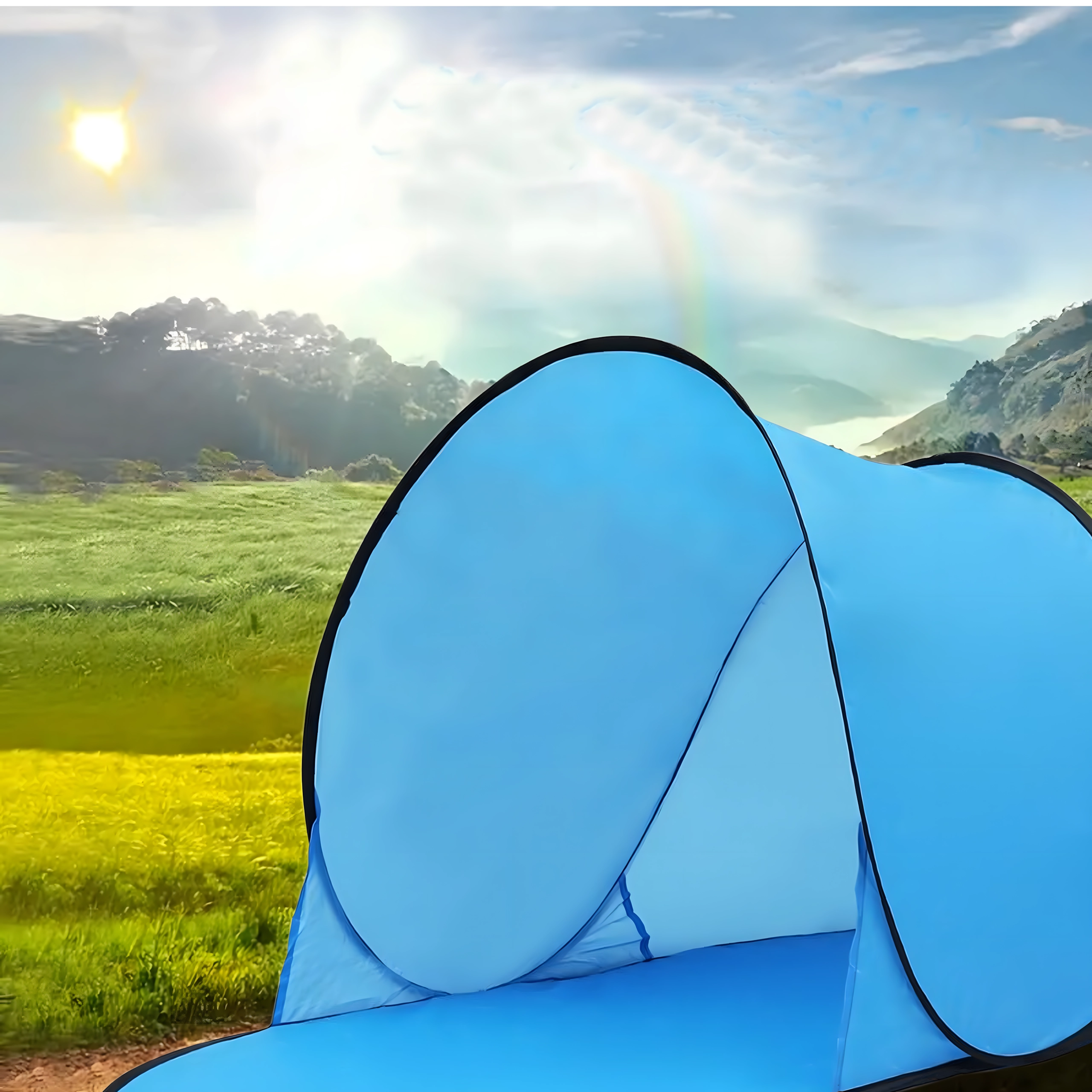 La structure pop-up se déploie d’elle-même et offre instantanément de l’ombre sans montage complexe de mâts.