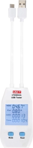 Le testeur UNI-T UT658DUAL offre une vue complète des paramètres de charge pour les appareils modernes. Sur un seul écran, vous suivez la U/I/P, la capacité (mAh), l’énergie (Wh) et la résistance du circuit (Ω). Grâce à une large plage de 4–24 V CC et un courant jusqu’à 3 A (USB-A) / 5 A (USB-C), vous testez facilement chargeurs, câbles et batteries externes.