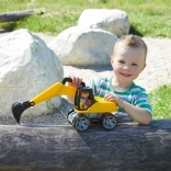 Les enfants contrôlent le bras mobile et le godet sans piles. La tourelle pivotante possède un verrou anti-rotation involontaire pour une conduite stable et sûre.