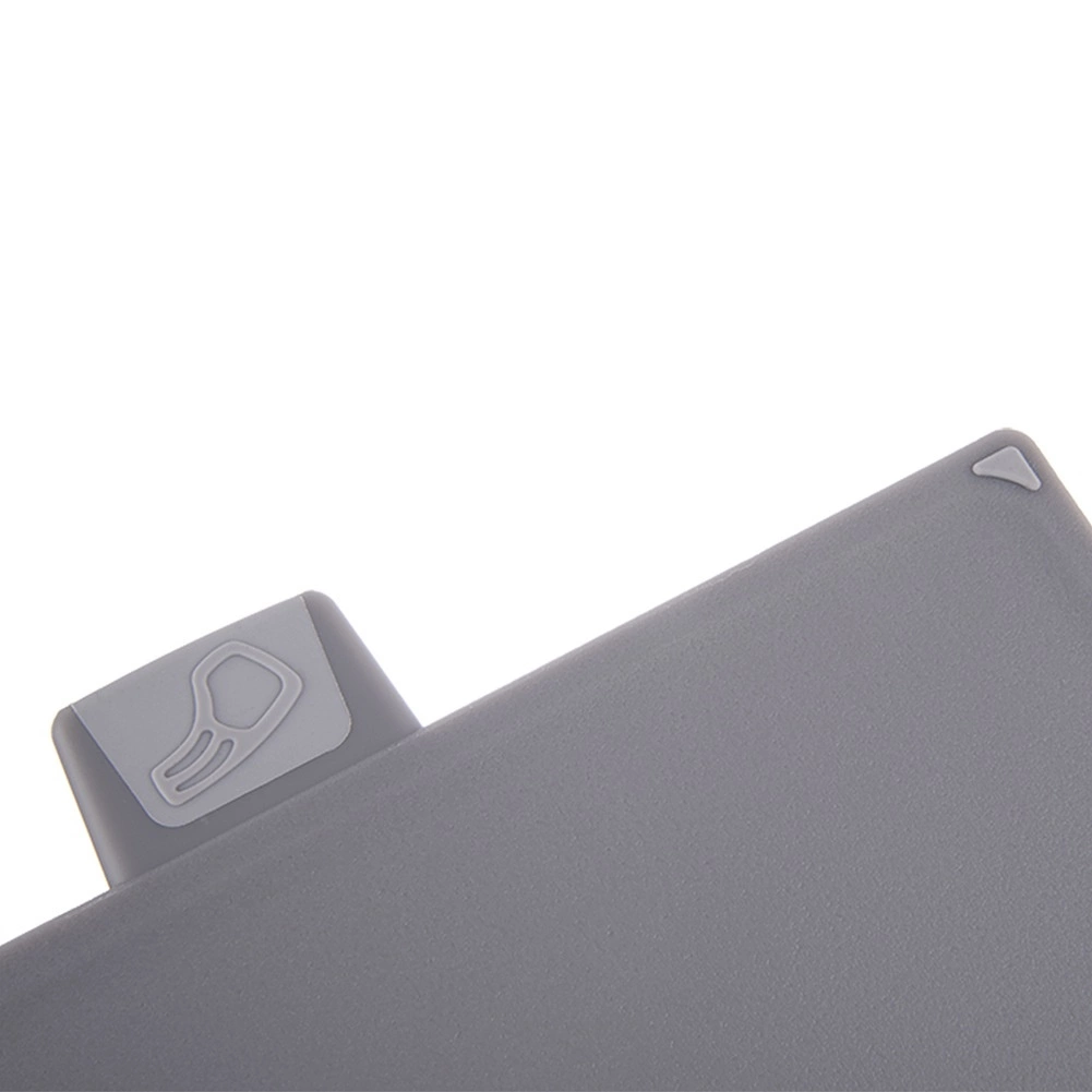 Les planches sont fabriquées en plastique de haute qualité, non poreux, sont réversibles et disposent d’une surface spécialement façonnée qui aide à retenir les jus des aliments. Des patins antidérapants des deux côtés assurent la stabilité sur le plan de travail. Le support pratique avec rainures profilées et pieds en mousse empêche le glissement et protège la surface de travail des rayures.