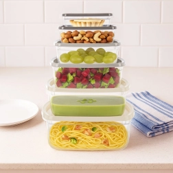 Les boîtes sont fabriquées en plastique de qualité, sans danger pour la santé. Elles résistent au froid comme aux températures plus élevées, conviennent au réfrigérateur, au congélateur et passent au lave-vaisselle. Après usage, vous pouvez facilement les emboîter les unes dans les autres pour un gain de place maximal.