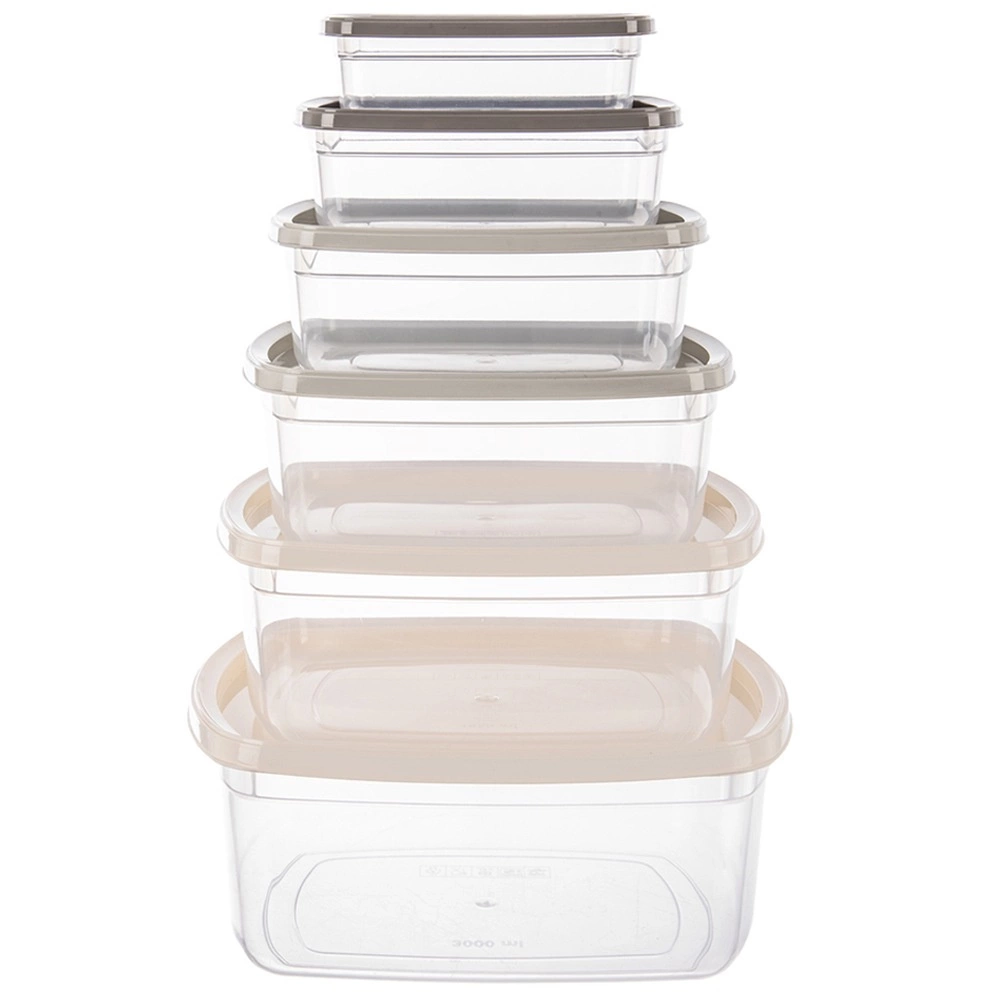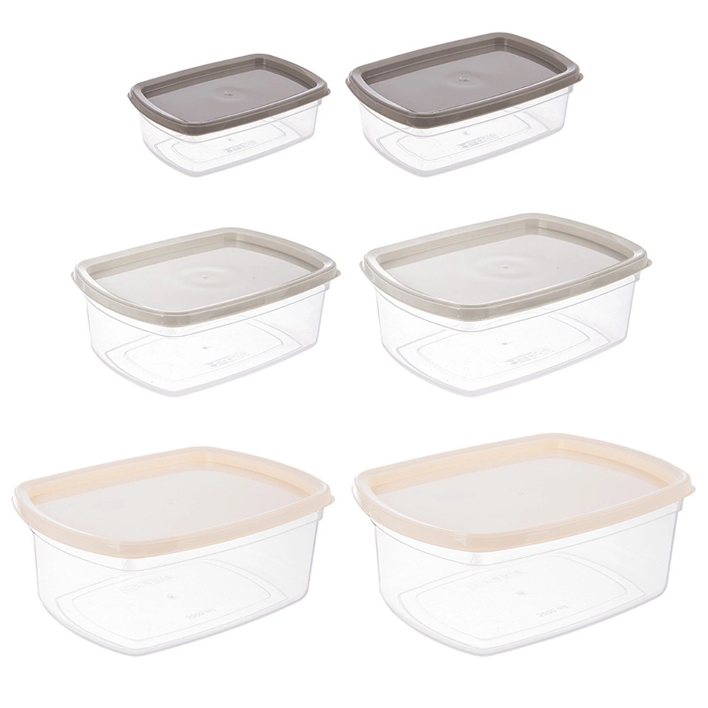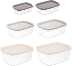 Pratique set de six boîtes transparentes avec couvercles de différentes tailles pour un rangement clair des aliments à la maison comme en déplacement. Grâce aux couvercles bien étanches, les aliments restent frais plus longtemps, elles conviennent au réfrigérateur et au congélateur et passent au lave-vaisselle. Les boîtes s’emboîtent les unes dans les autres, ce qui économise de la place dans le placard. 6 tailles, couvercles étanches, design empilable et emboîtable, sûr pour les aliments et résistance de -25 °C à +95 °C.