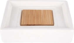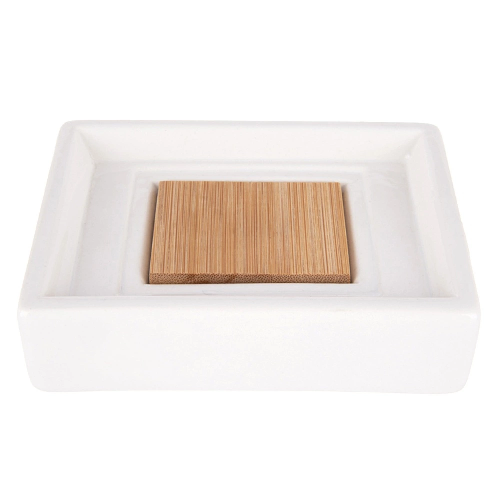 Insert en bambou surélevé pour évacuer l’eau, prolonger la durée de vie du savon et maintenir la propreté autour du lavabo.