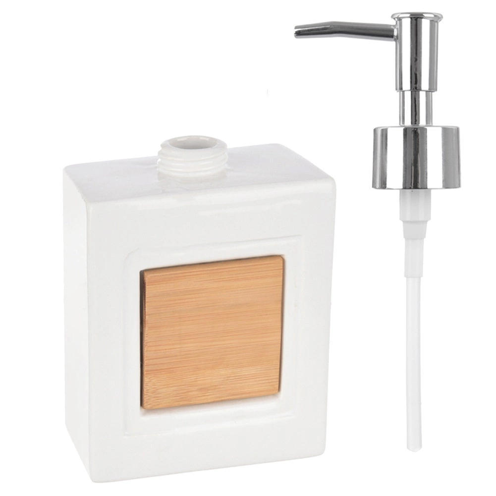 Corps en céramique avec pompe métallique amovible pour un remplissage facile et un dosage propre du savon liquide ou du désinfectant.