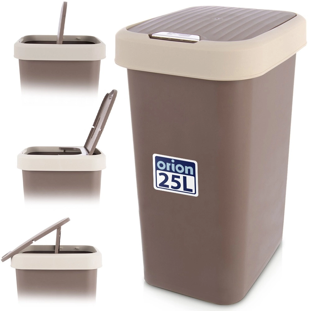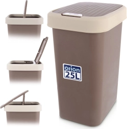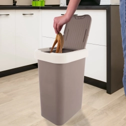 Poubelle pratique en plastique d’une capacité de 25 l avec couvercle basculant, en combinaison marron-crème. Légère et résistante, elle se nettoie facilement et, grâce au verrouillage en position ouverte, convient parfaitement à la cuisine, la salle de bains et le bureau. Limite la propagation des odeurs et son format étroit et rectangulaire permet de gagner de la place.
