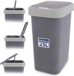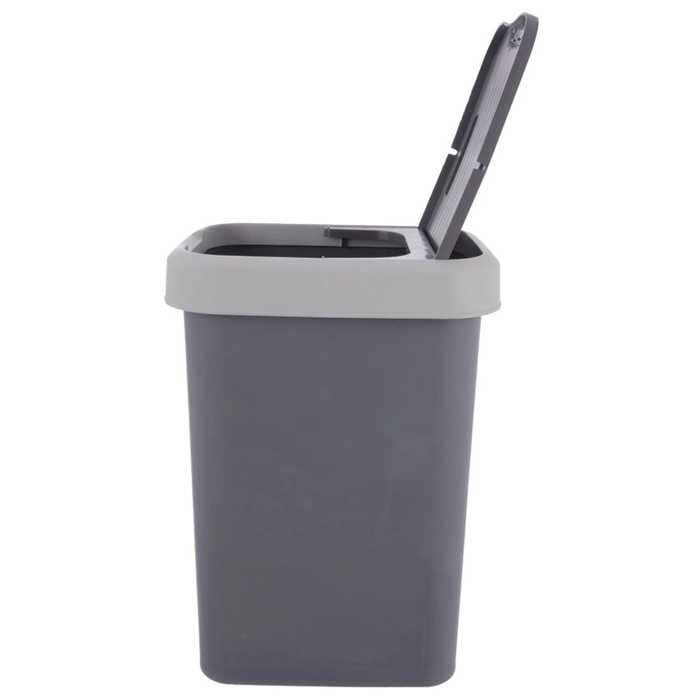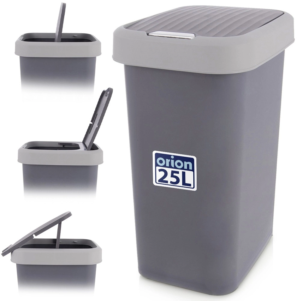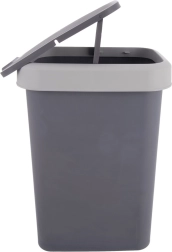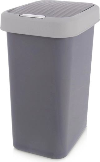 Poubelle en plastique pratique de 25 l dans une élégante couleur grise, avec couvercle basculant pour jeter les déchets facilement et de façon hygiénique. Grâce à ses dimensions compactes, elle convient à la cuisine, à la salle de bains et au bureau. Conception résistante et légère, ouverture du couvercle bidirectionnelle et possibilité de blocage en position ouverte pour un usage quotidien confortable.