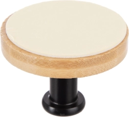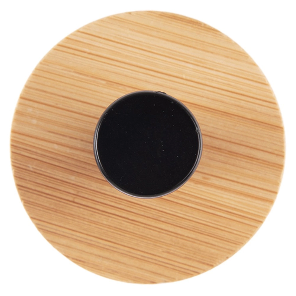 La base en bois naturel et la tige métallique noire mate apportent une touche moderne et minimaliste qui s’accorde facilement avec vos autres accessoires.