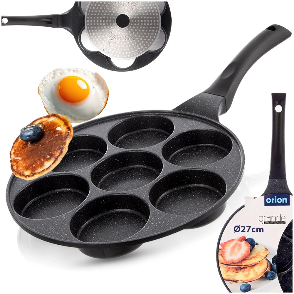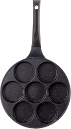 Cette poêle élégante avec revêtement granit antiadhésif est idéale pour préparer rapidement petits-déjeuners et en-cas. Grâce à ses sept moules ronds, vous obtenez toujours des portions identiques à la forme parfaite, des œufs au plat aux blinis en passant par les mini crêpes. Le corps en aluminium avec revêtement PFLUON GRANIT permet une cuisson plus saine avec un minimum d’huile et facilite le nettoyage.