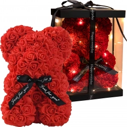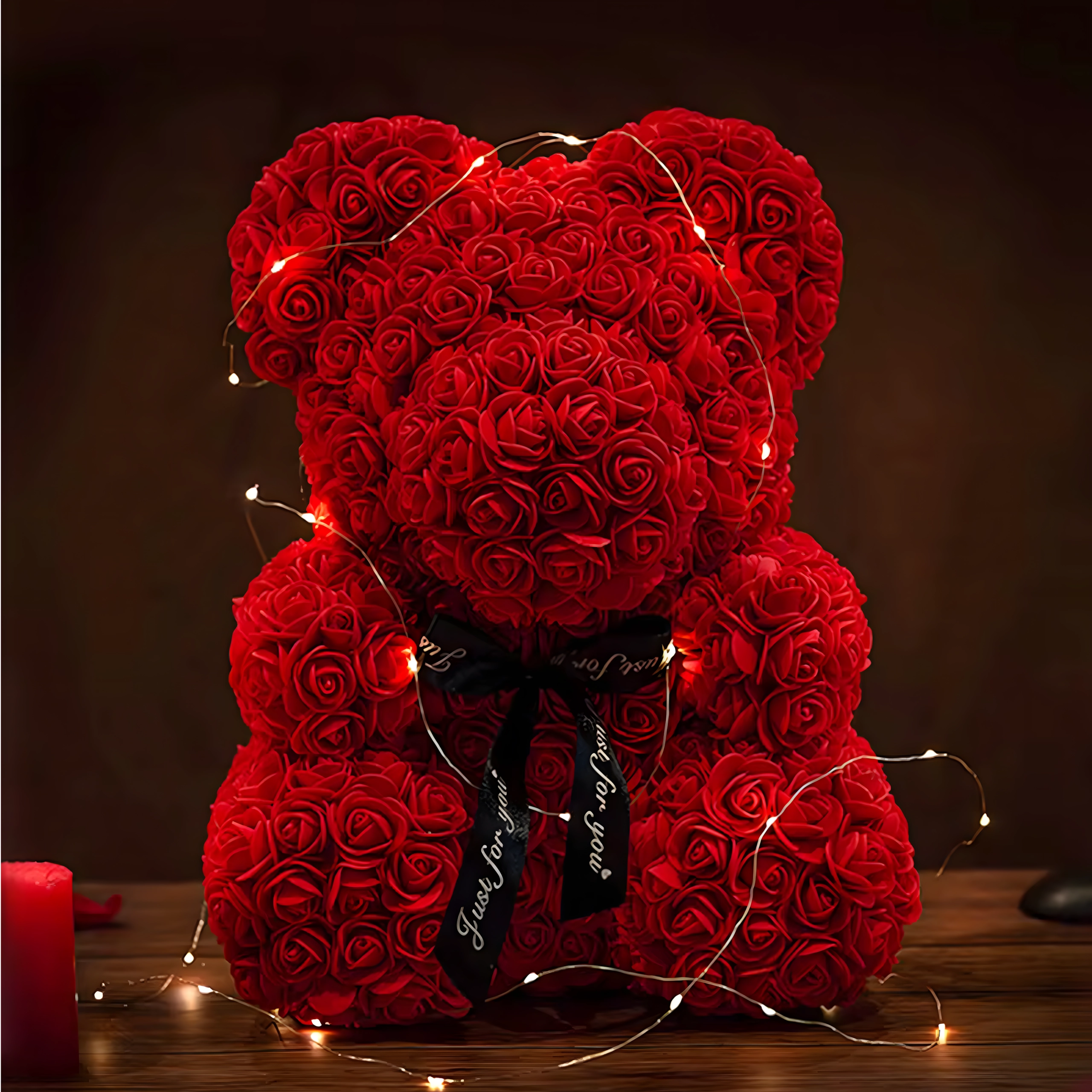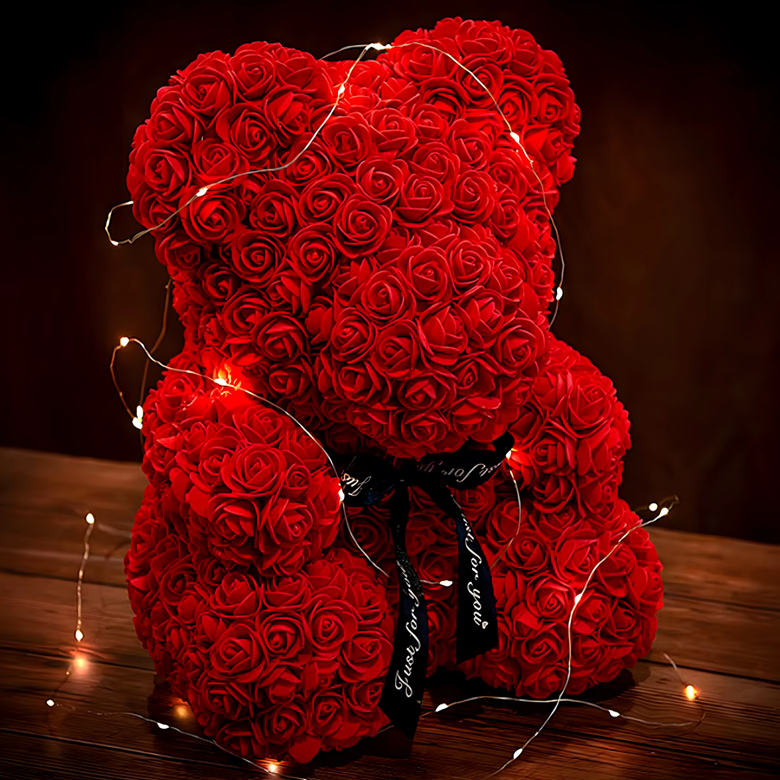 L’ourson en roses avec LED est une pièce décorative iconique qui marie la douceur des roses à une lumière chaleureuse. Les rosettes en mousse durable, assemblées à la main, conservent longtemps leur forme et leur couleur, tandis que les LED chaudes apportent une touche romantique à tout espace, sans souci d’entretien.