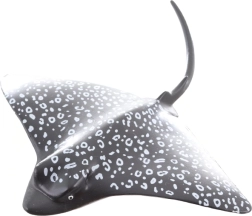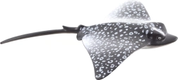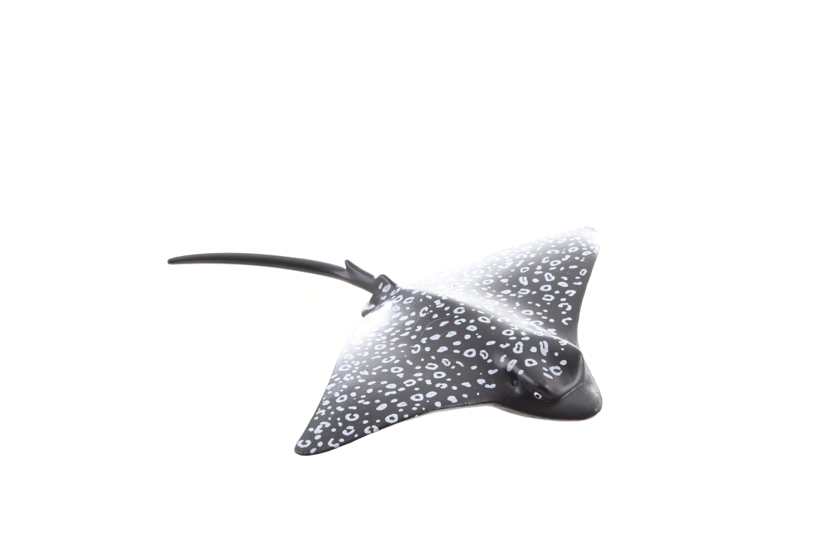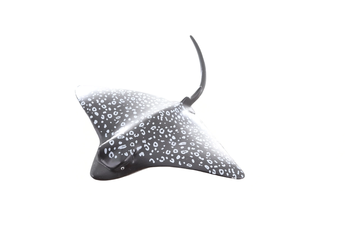 La forme détaillée des ailes, les taches contrastées et la longue queue offrent un rendu fidèle de la manta qui stimule l’imagination des enfants.