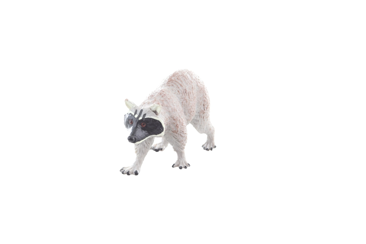 La texture détaillée du pelage, la peinture précise du masque facial et de la queue annelée offrent un aspect authentique du raton laveur pour le jeu éducatif comme libre.