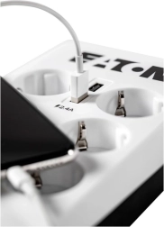 La EATON Protection Box 6 USB est une multiprise parafoudre haut de gamme conçue pour protéger ordinateurs, TV, Hi‑Fi, consoles de jeu, équipements réseau et autres appareils électroniques sensibles. Grâce à sa conception avancée conforme à la norme IEC 61643-11, elle filtre efficacement les pointes de tension, les interférences et les effets indirects de la foudre. Vous contrôlez l’état de la protection grâce à l’indicateur Protection OK.