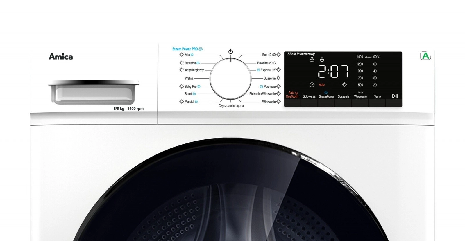 Lave-linge séchant polyvalent avec une capacité de 8 kg de lavage et 5 kg de séchage, alliant fonctionnement économe, programmes modernes et commande électronique avec affichage clair. La grande ouverture frontale facilite le chargement, tandis que de multiples cycles de lavage et de séchage assurent un soin parfait du linge au quotidien.