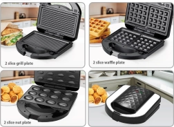 Grill, gaufres ou biscuits en forme de noisettes – il suffit de changer les plaques pour préparer exactement ce dont vous avez envie.
