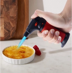 Ce chalumeau au gaz polyvalent est idéal pour la crème brûlée, la caramélisation du sucre, le gratinage des fromages, la brûlure de la peau des tomates ou poivrons, ainsi que la saisie finale des viandes pour une croûte croustillante. Il s’utilise aussi hors cuisine – pour allumer le barbecue, la cheminée ou pour de petits travaux d’atelier.