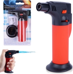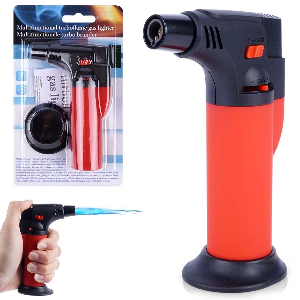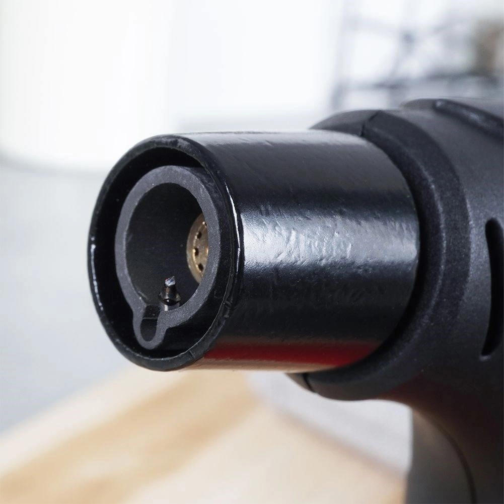 Le chalumeau est fabriqué en métal résistant et en plastique de qualité, dispose d’un réglage continu du gaz, d’une valve pour un remplissage facile avec du gaz pour briquet standard et d’un mode mains libres grâce au loquet. La poignée antidérapante assure une prise en main sûre, et le verrou de sécurité protège contre l’allumage accidentel et l’accès des enfants.