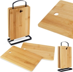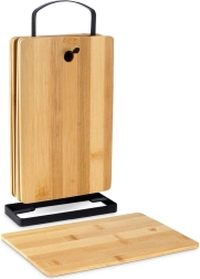 L’ensemble de six planchettes de cuisine en bambou dans un élégant support noir apporte ordre et style à toute cuisine. Chaque planchette mesure 22 × 14 × 0,4 cm, le support 15 × 6 × 29 cm : il se place facilement sur le plan de travail et garde les planches toujours à portée de main.