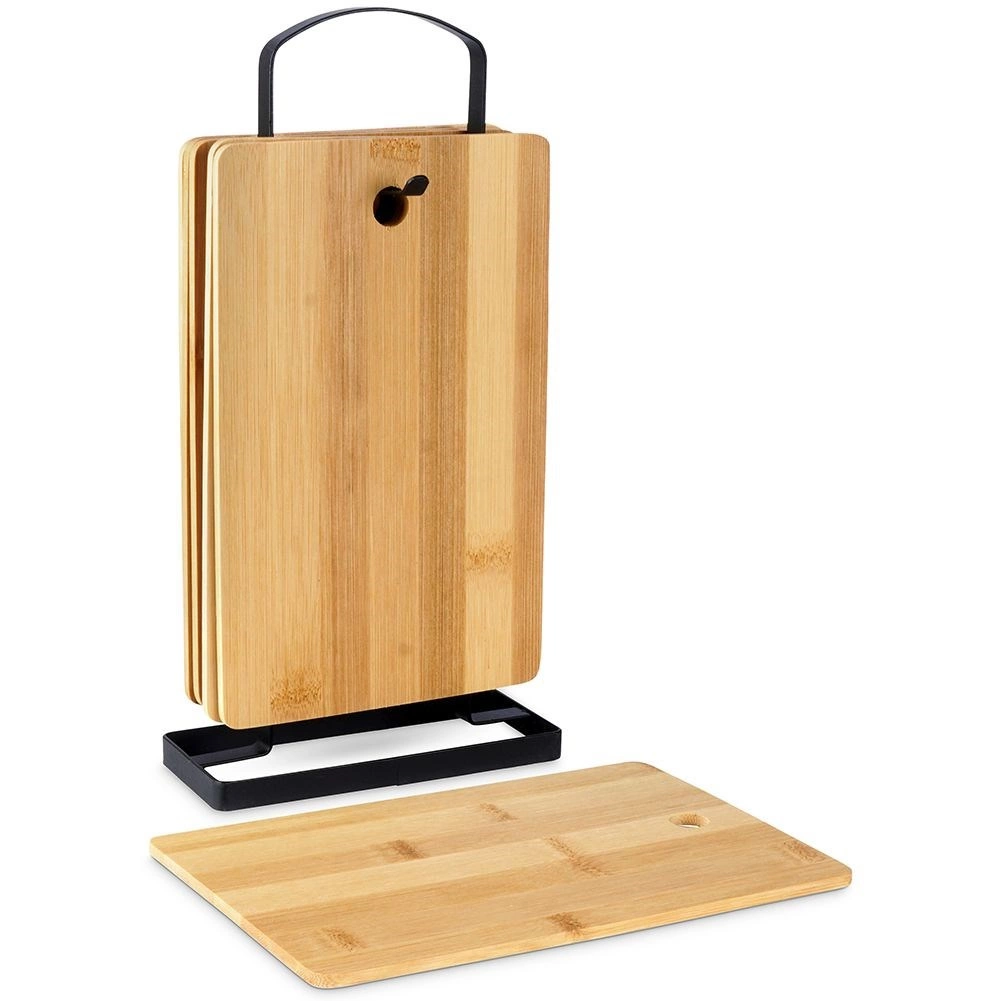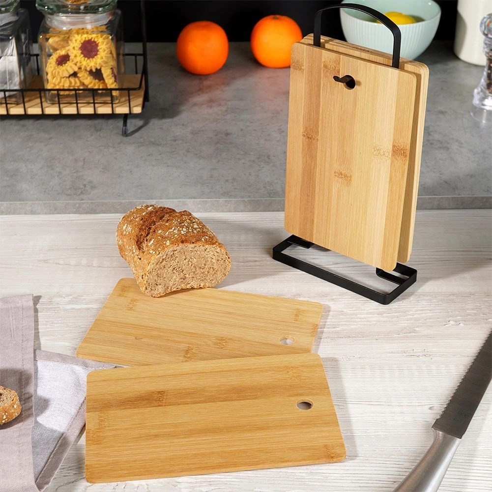 Le bambou est naturellement résistant à l’humidité et au gauchissement, sèche rapidement et n’absorbe pas les odeurs. Sa surface lisse est agréable à l’usage et douce pour le tranchant des couteaux. Grâce à l’ouverture pratique, les planchettes se transportent et se suspendent aisément. L’ensemble convient à la découpe quotidienne et au service élégant de fromages, pains et snacks.
