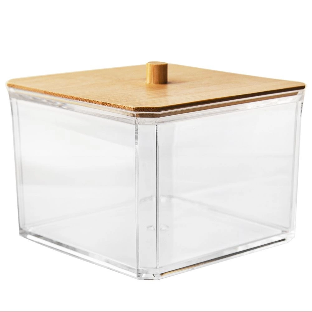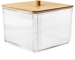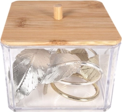 Boîte de rangement pour cotons-tiges avec couvercle en bambou
