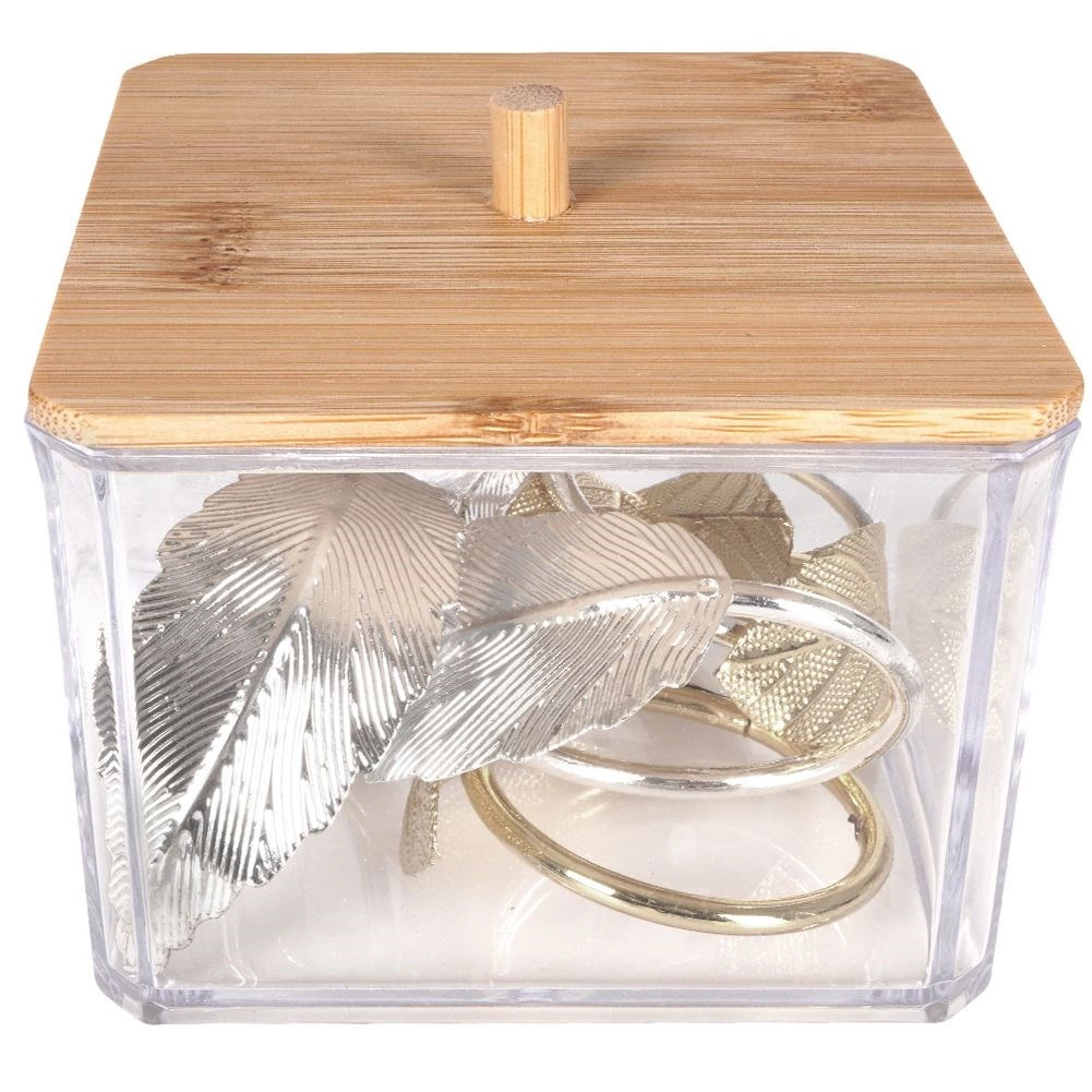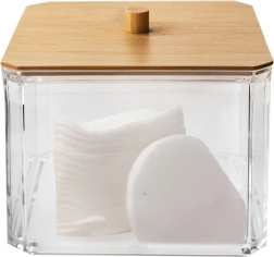 Cette élégante boîte pour cotons-tiges associe des parois transparentes en plastique résistant et l’aspect naturel d’un couvercle en bambou doté d’un bouton pratique. Idéale pour la salle de bain, la chambre ou le coin maquillage – elle garde les petits objets bien organisés et à l’abri de la poussière.