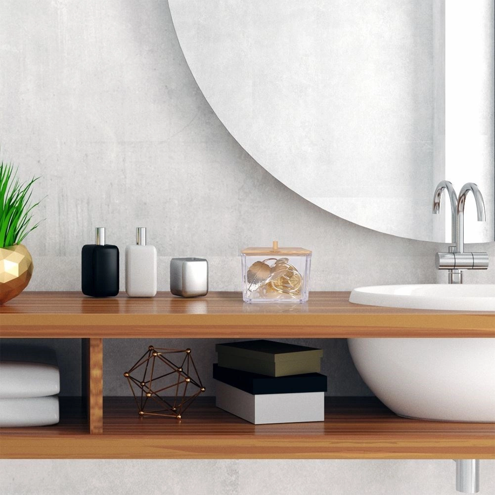 Organiseur pratique et élégant pour cotons-tiges en plastique transparent avec couvercle en bambou naturel et poignée. Il garde le contenu propre, toujours à portée de main et s’intègre parfaitement à toute salle de bain ou coiffeuse. Grâce aux parois transparentes, vous avez un aperçu immédiat de l’état des réserves et le remplissage est particulièrement facile grâce à l’ouverture supérieure. Conception résistante, couvercle en bambou anti-poussière et design moderne pour un confort au quotidien.