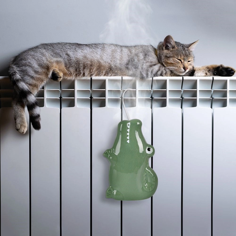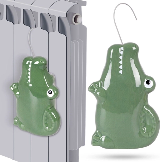 Adorable humidificateur en céramique pour radiateur en forme de crocodile, il rétablit instantanément l’humidité intérieure pendant la saison de chauffage. Il suffit de le remplir d’eau, de l’accrocher au radiateur à l’aide d’un crochet métallique et de laisser la chaleur évaporer naturellement l’eau. Grâce à ses dimensions compactes et à son design décoratif, il est idéal pour la chambre d’enfant, le salon et la chambre à coucher.