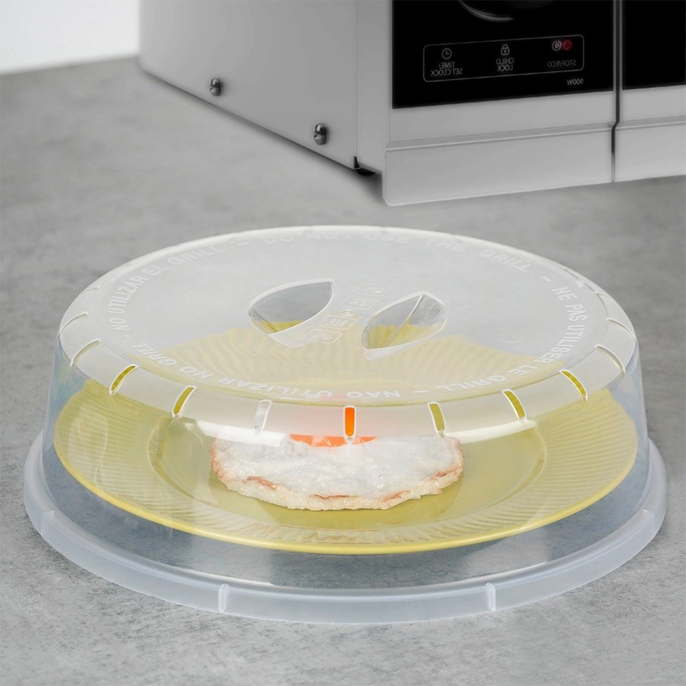 Gardez votre micro-ondes parfaitement propre et réchauffez vos aliments en toute sécurité. Le couvercle pour micro-ondes de 24 cm de diamètre et 7 cm de hauteur évite les éclaboussures de sauces et de graisses tout en laissant s’échapper suffisamment de vapeur grâce aux orifices intégrés. Le matériau transparent vous permet de surveiller la chauffe sans soulever le couvercle.