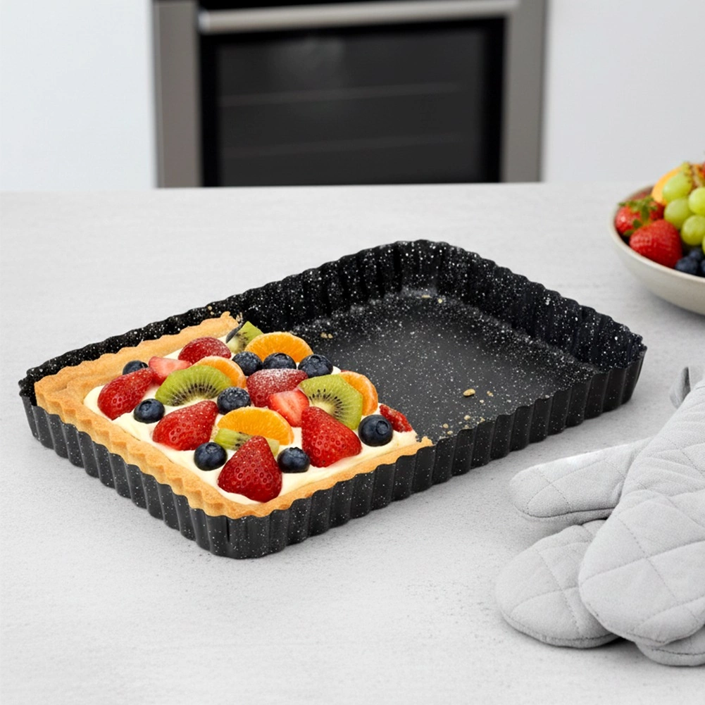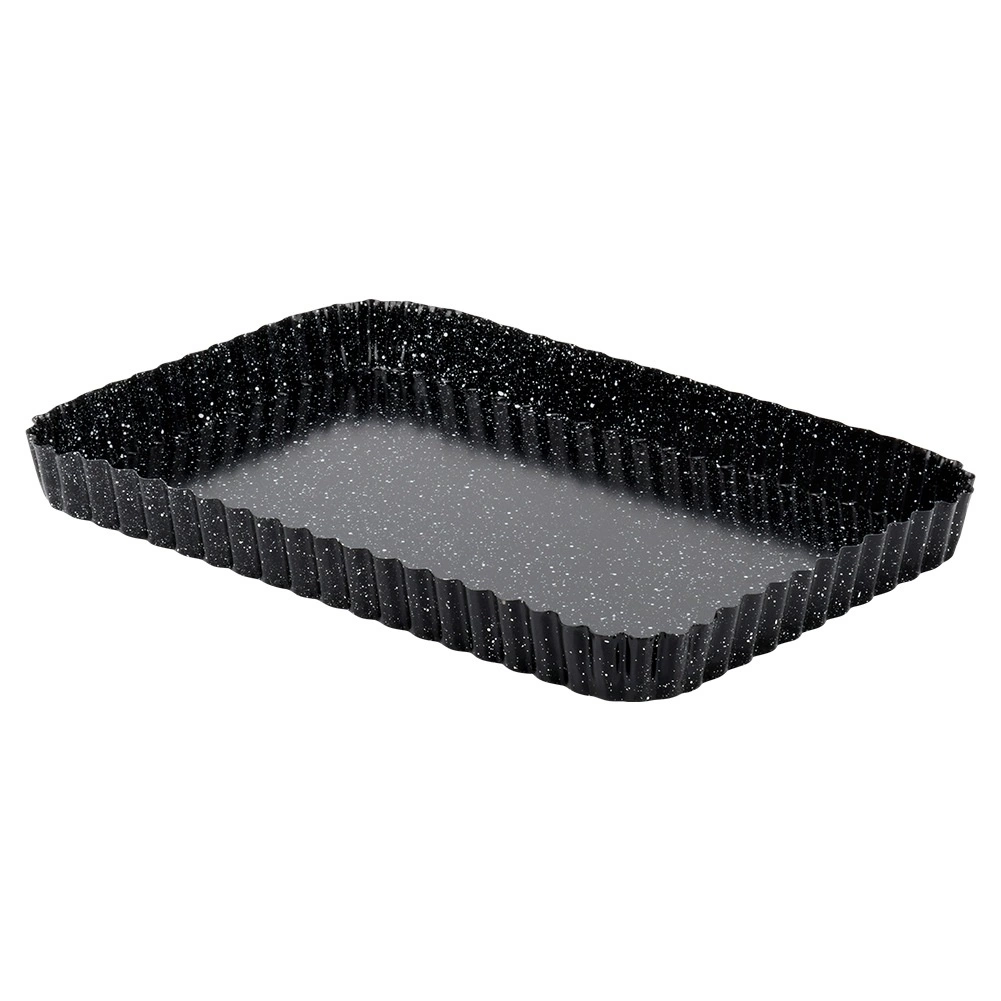 Le moule rectangulaire à bord cannelé avec fond amovible est un excellent choix pour la pâtisserie du quotidien comme des grandes occasions. Grâce à l’acier au carbone de qualité avec revêtement granit, il conduit parfaitement la chaleur et permet d’obtenir un résultat impeccable et uniforme sans brûler.