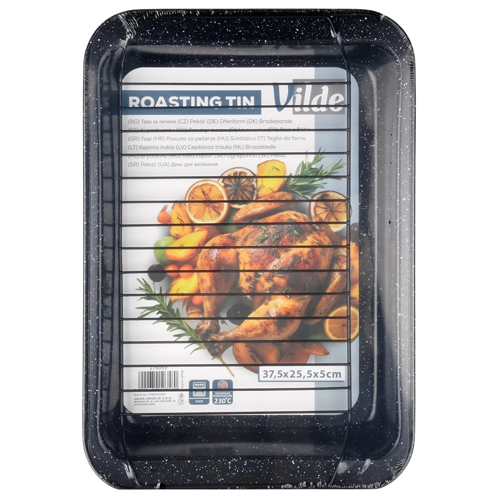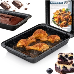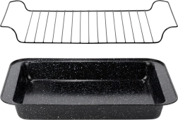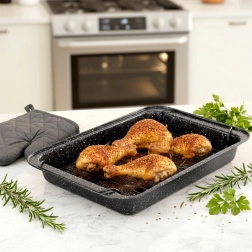 Cette rôtissoire solide de 37,5 × 25,5 × 5 cm est un excellent choix pour la cuisine quotidienne comme pour les rôtis de fête. Le revêtement granit antiadhésif évite que les aliments n’attachent même avec très peu de matière grasse et permet une préparation plus saine. La grille métallique amovible maintient la viande au-dessus des sucs, assurant une cuisson uniforme sur toutes les faces.