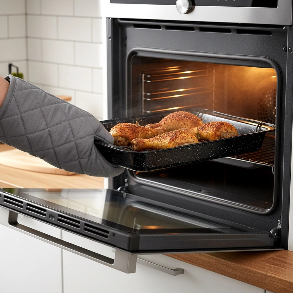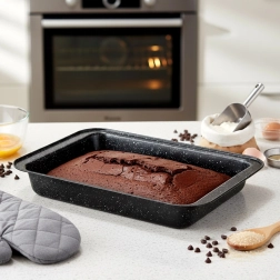 Grâce à la répartition homogène de la chaleur, la viande reste juteuse et la croûte croustillante. Moule polyvalent: idéal pour la viande, les légumes, les gratins, les tartes et même la pizza maison à bord plus haut. Après cuisson, le nettoyage est simple – compatible lave-vaisselle.
