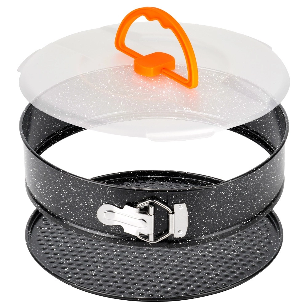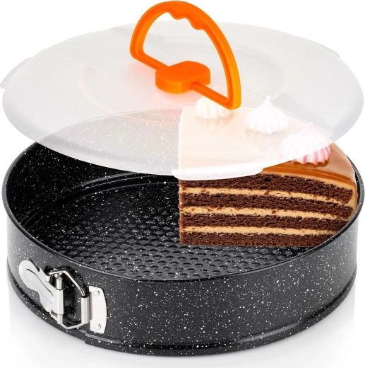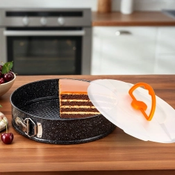 Grâce au bord à charnière et au fond amovible, vous démoulez le dessert sans déformer sa forme. Le couvercle transparent avec poignée confortable protège du dessèchement et facilite le transport ainsi que le stockage au réfrigérateur.