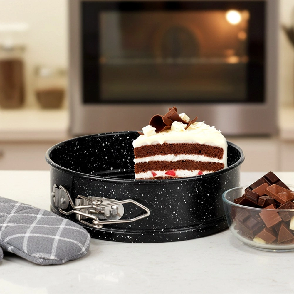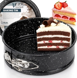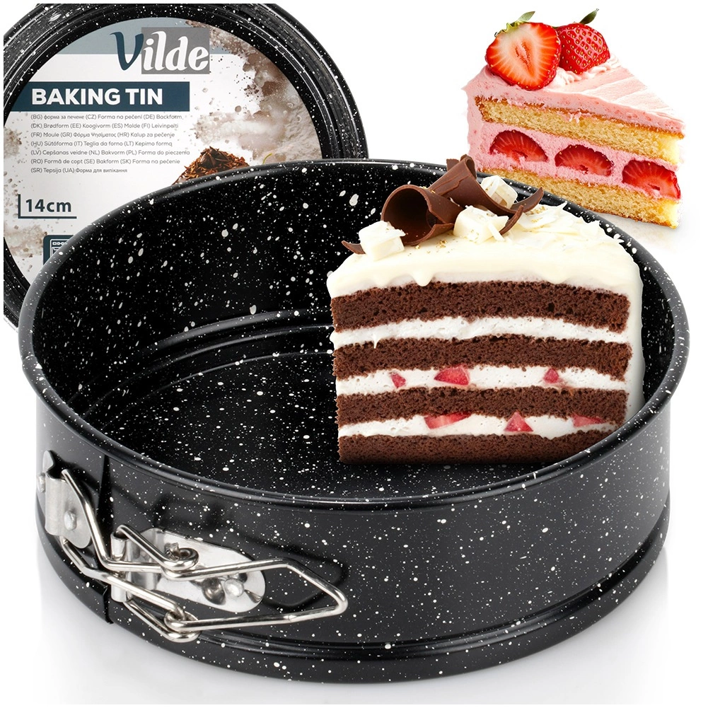 Moule à gâteau rond compact de 14 cm de diamètre, avec bord à charnière et fond amovible pour un démoulage facile des desserts. Fabriqué en acier au carbone durable avec un revêtement granit antiadhésif, il assure une cuisson uniforme jusqu’à 230 °C. Idéal pour mini gâteaux, cheesecakes, génoises et desserts froids au quotidien.