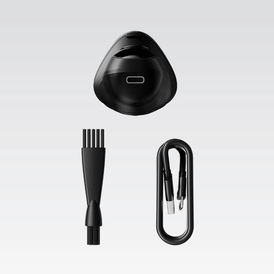 Grâce à ses dimensions compactes 15,5 × 6 × 5,5 cm, le rasoir est léger, tient bien en main et se glisse facilement dans une trousse de toilette. La boîte inclut un câble USB pour la recharge et une brosse de nettoyage pour un entretien sans effort.