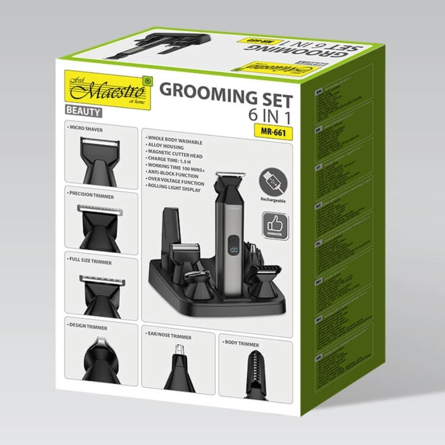 - Multifonction 6‑en‑1 – sabots pour la coupe des cheveux, l’entretien de la barbe et les détails.
