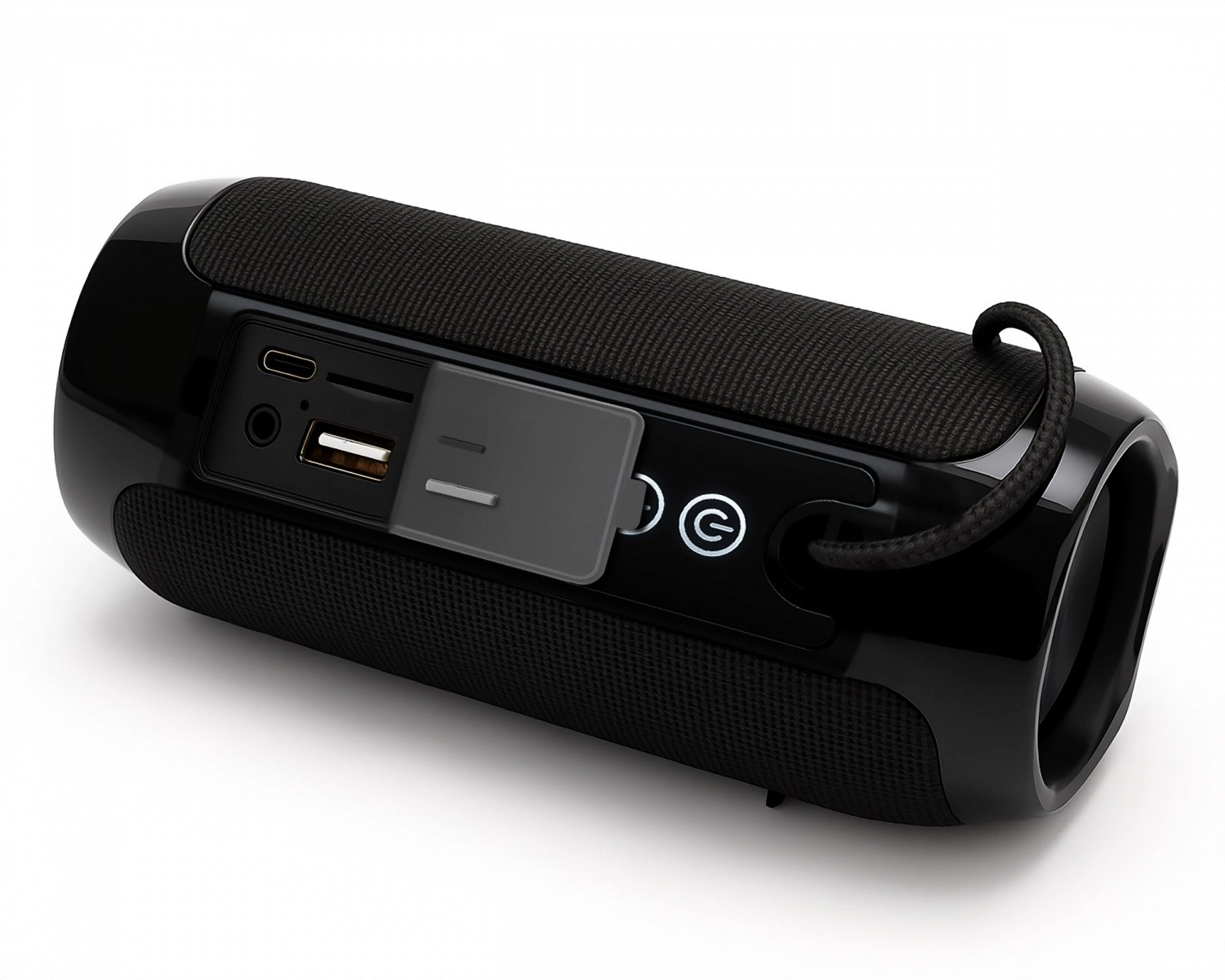 La construction cylindrique robuste avec radiateurs passifs met en valeur les basses tout en restant facile à transporter. La recharge via USB‑C est rapide et pratique, afin que vous puissiez emporter la musique partout – de la plage au camping, jusqu’aux soirées sur le balcon.