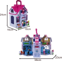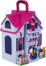 Cette maison de poupées pliable séduira les enfants avec des scènes domestiques réalistes. Une fois ouverte, vous obtenez un intérieur entièrement accessible comprenant une entrée, une cuisine, un salon avec cheminée, une salle de bain, une chambre et une chambre d’enfant. Sont inclus une petite famille (maman, papa, enfant), un chien et du mobilier, afin que les enfants puissent inventer aussitôt des histoires et stimuler leur imagination.