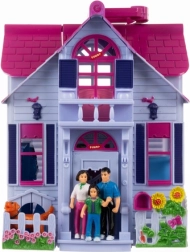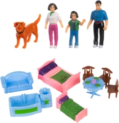 Cuisine, salon avec cheminée, chambre, chambre d’enfant, salle de bain et entrée. Inclut des figurines de la famille, un chien et du mobilier pour jouer immédiatement.