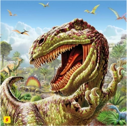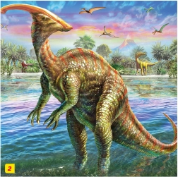 Chaque boîte contient une figurine du même dinosaure que celui représenté sur le puzzle. Une fois l’image terminée, le jeu libre et les histoires préhistoriques peuvent commencer.