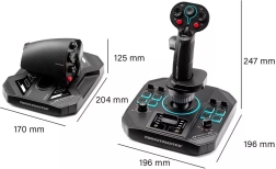 Le joystick offre 3 axes (X, Y, Z) avec capteurs H.E.A.R.T. (HallEffect AccuRate Technology) en résolution 16 bits pour des manœuvres fines. Sur la base et la poignée, vous trouverez un riche ensemble de boutons, hats, mini-joystick et éléments rotatifs, permettant de garder le ciblage, l’armement et les contre-mesures toujours à portée.