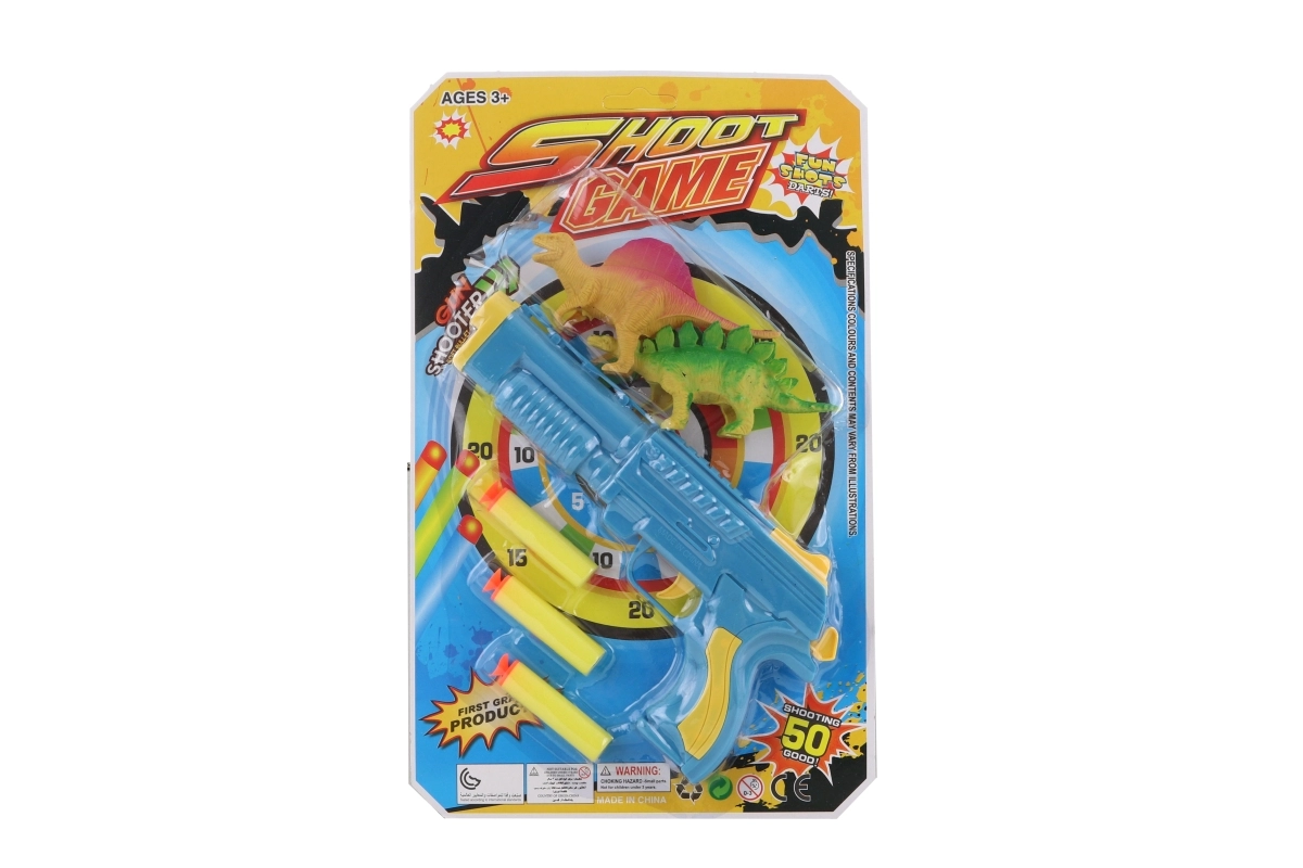 Pistolet avec fléchettes en mousse et dinosaures