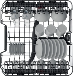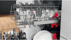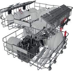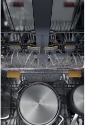 Les paniers supérieur et inférieur proposent des picots rabattables et un réglage en hauteur. Vous placez ainsi facilement verres hauts, plaques et ustensiles volumineux sans compromis sur la capacité.