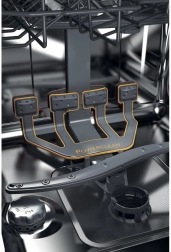 Des jets d’eau puissants et plusieurs bras d’aspersion assurent l’élimination en profondeur des saletés incrustées, même dans les zones difficiles d’accès – des verres jusqu’aux ustensiles en inox.
