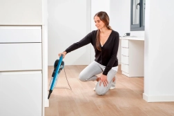 Les accessoires 3‑en‑1 vous aident pour un nettoyage ciblé : suceur fin pour les zones difficiles d’accès et brosse pour meubles, textiles et tissus d’ameublement. Avec un poids de seulement 2,5 kg, l’aspirateur se manie aisément même lors de sessions prolongées.