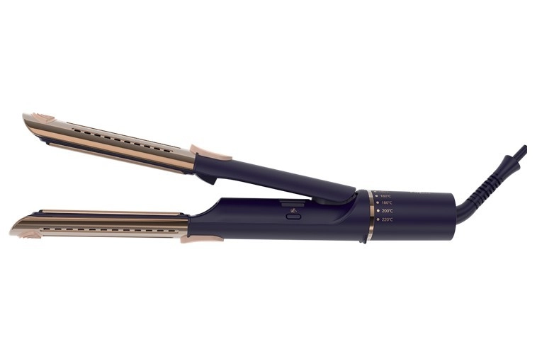 Un flux d’air froid après le chauffage de la mèche fixe la forme, ferme la cuticule et aide à préserver l’hydratation. La coiffure tient plus longtemps, les cheveux sont lisses et plus lumineux.