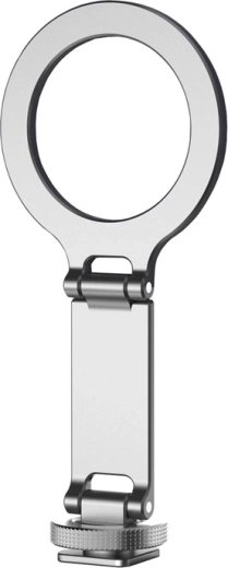 Grâce à la griffe froide et au pas de vis standard 1/4", vous fixez facilement le support à un appareil photo, une cage, un bras ou un trépied et créez votre propre configuration d’enregistrement. La double articulation permet un réglage précis : anneau magnétique 0–240° et base 0–180° pour une composition optimale.