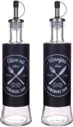 Avec ce set de deux bouteilles élégantes, vous aurez toujours l’huile et le vinaigre à portée de main et sous contrôle. Le verre de haute qualité combiné à la coque noire mate et au bec verseur en acier inoxydable garantit une utilisation propre, pratique et hygiénique. Le marquage clair aide à distinguer rapidement le contenu.